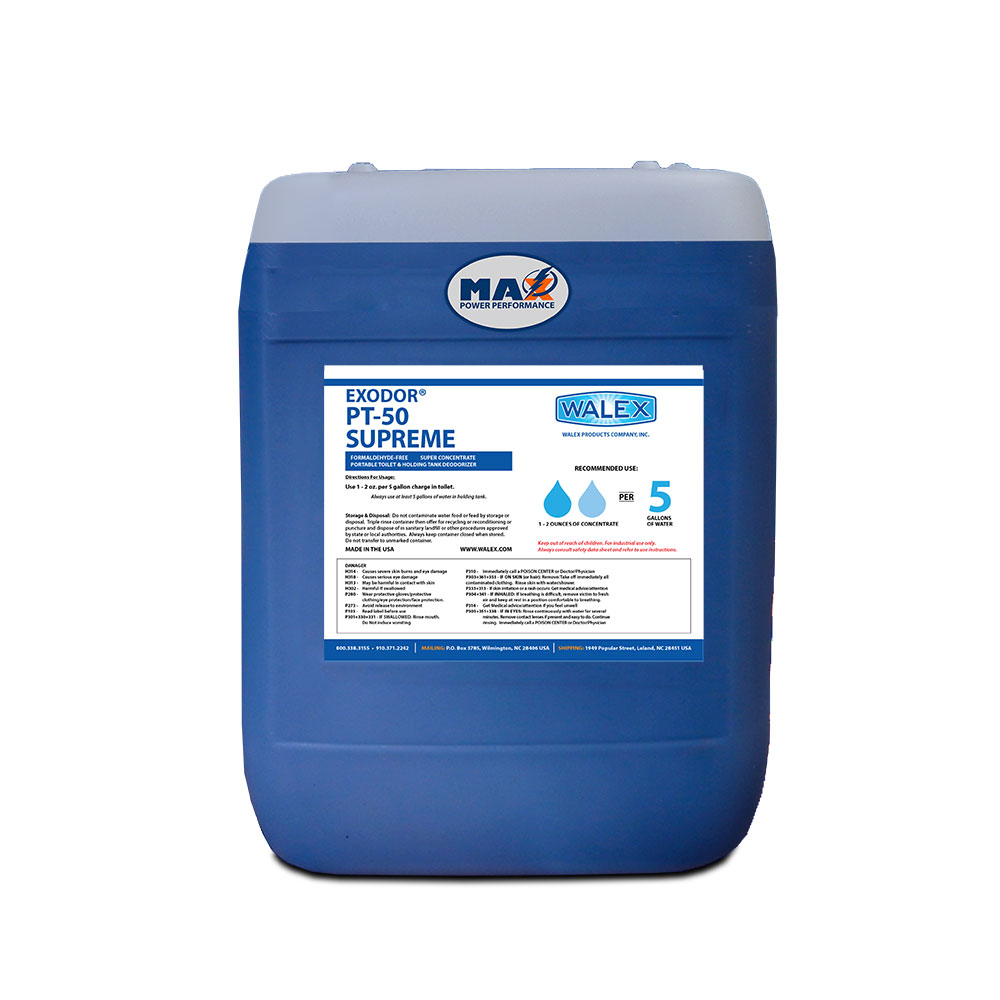 Geconcentreerd toiletdeodorant PT-50 Supreme MAX is hét superconcentraat voor gebruik tijdens extreme omstandigheden, hoogfrequent gebruik van de toiletten bij hoge temperaturen. Deze zeer geconcentreerde vloeibare deodorant breekt het afval af en elimineert de geuren van de afvaltank.